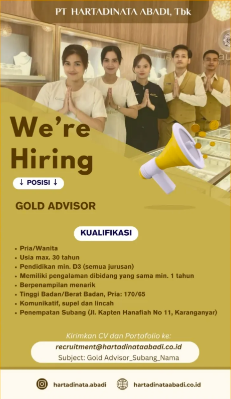 Berpusat di Bandung, Jawa Barat, PT Hartadinata Abadi Tbk telah berkembang pesat dengan jaringan toko perhiasan yang tersebar di berbagai daerah di Indonesia, termasuk di Subang dan wilayah sekitarnya.