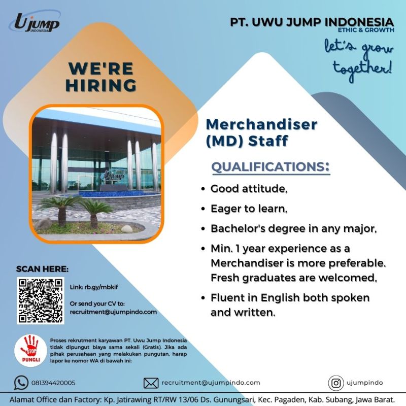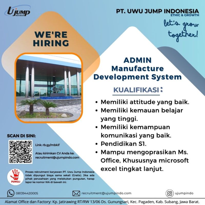 Saat ini PT Uwu Jump Indonesia Subang sedang membuka lowongan kerja untuk posisi sebagai berikut :