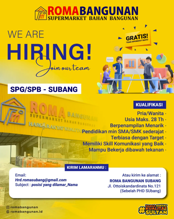 Lowongan Kerja Roma Bangunan Subang Terbaru 2025