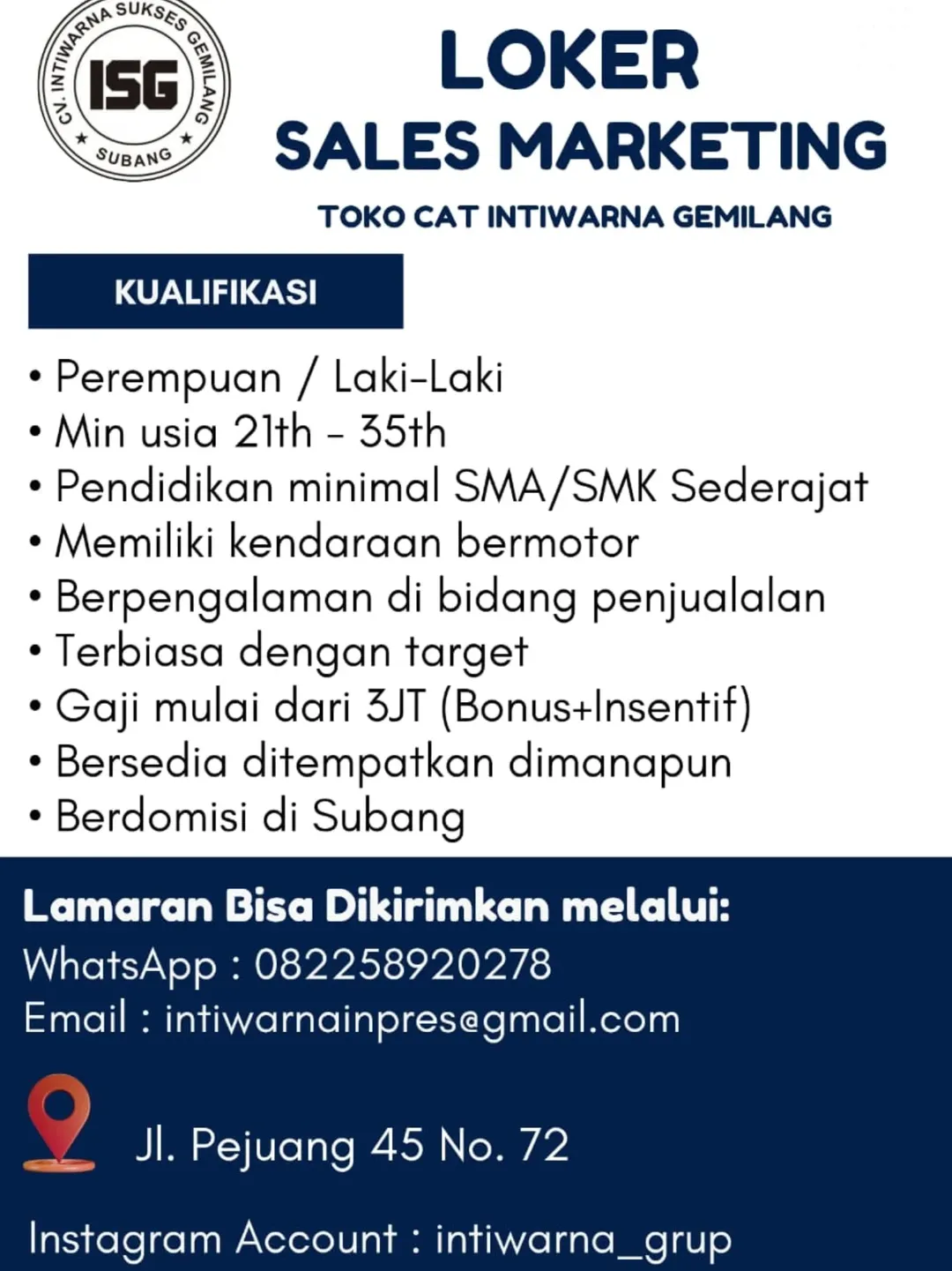 Lowongan Kerja Toko Cat Intiwarna Subang Terbaru 2025